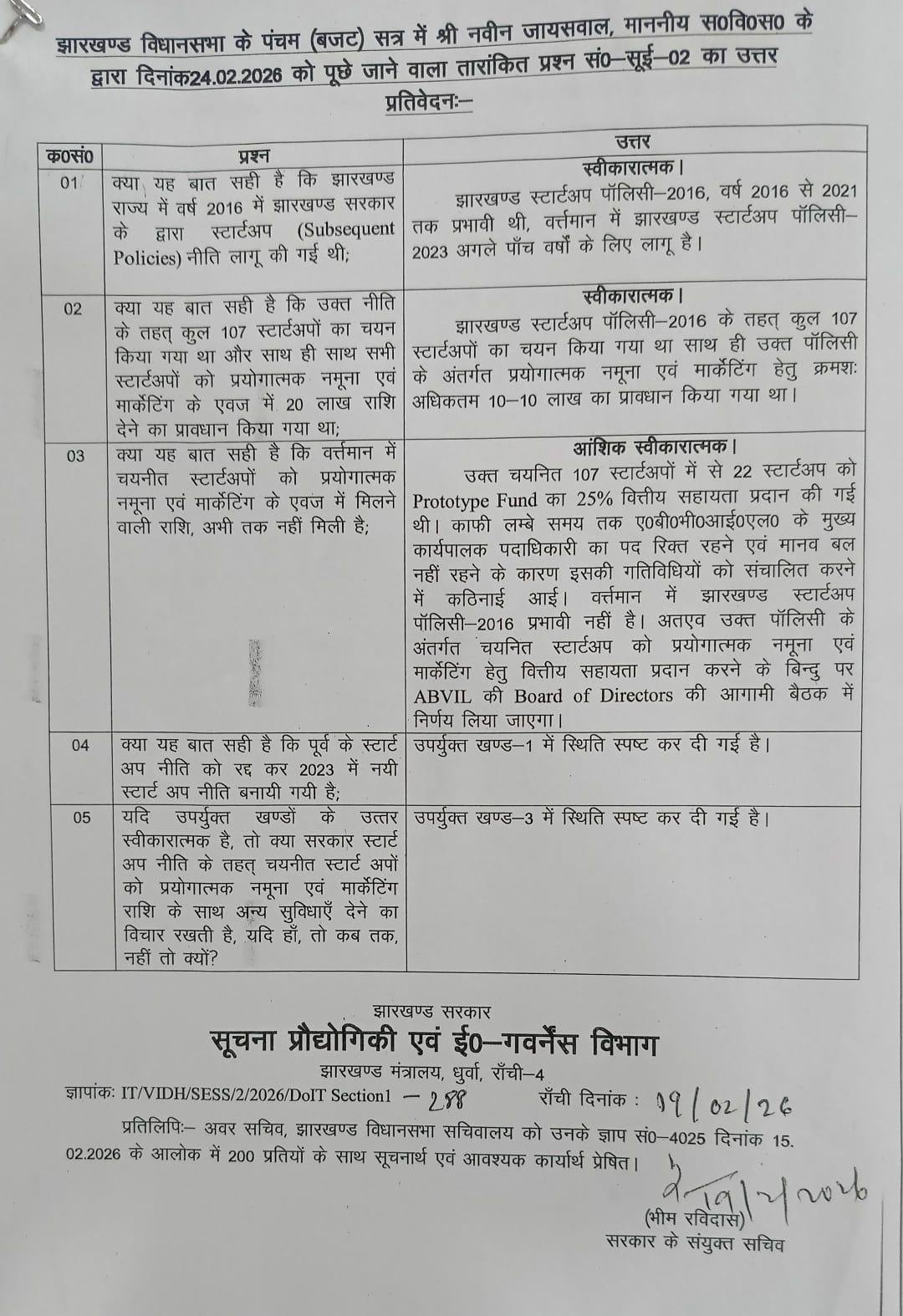 Jharkhand: झारखंड विधानसभा में पूछे गए प्रश्न और सूचना प्रौद्योगिकी एवं ई-गवर्नेंस विभाग द्वारा दिए गए आधिकारिक उत्तर ने राज्य के स्टार्टअप इकोसिस्टम की वास्तविक स्थिति को उजागर कर दिया है। उत्तर से यह स्पष्ट है कि 2016 की स्टार्टअप नीति अब अप्रभावी है, जबकि नई नीति लागू होने के बावजूद ठोस परिणाम सामने नहीं आए हैं।