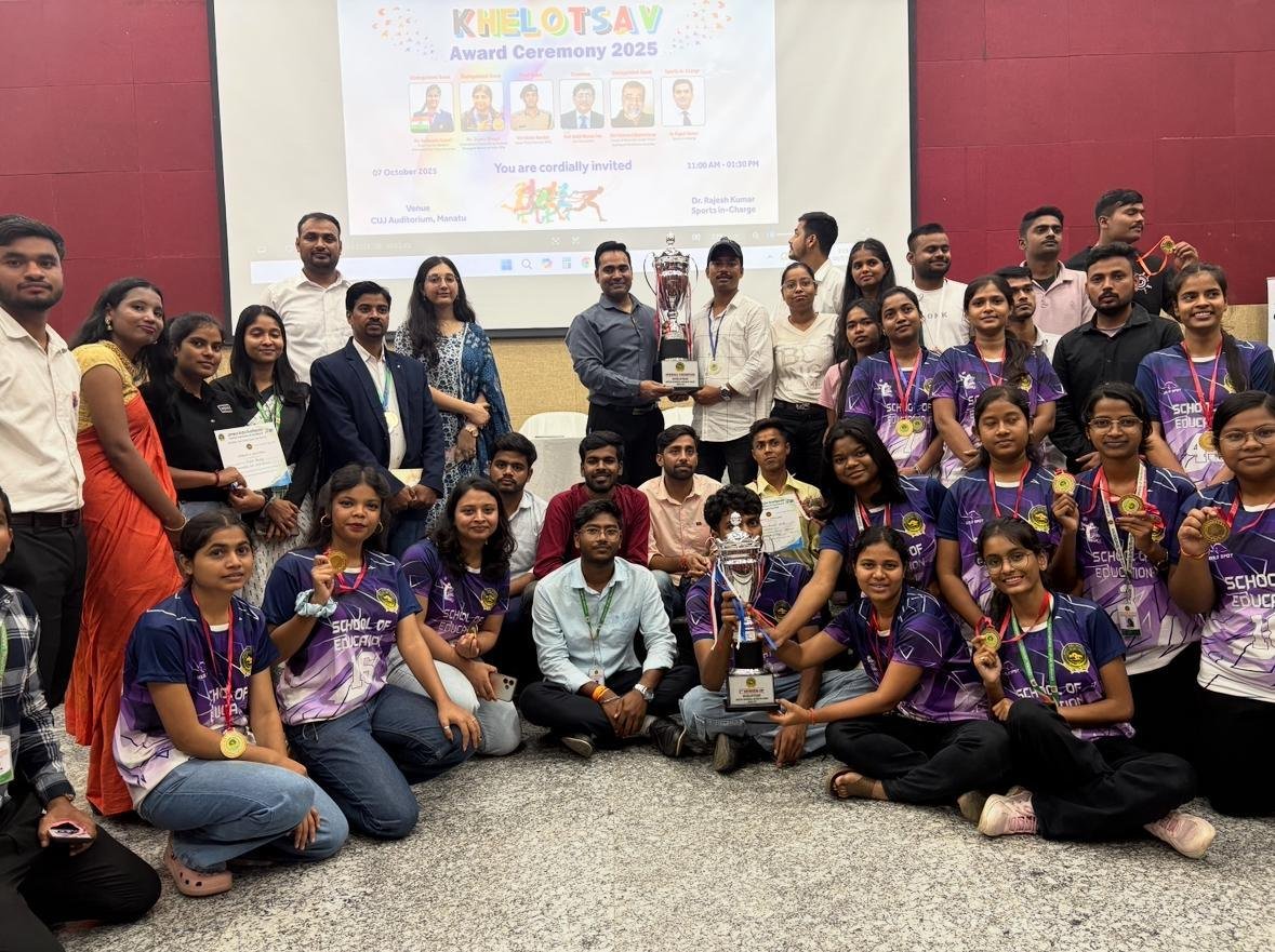 रांची. केंद्रीय विश्वविद्यालय झारखंड के स्पोर्ट्स विंग द्वारा आज मनातू स्थित सीयूजे ऑडिटोरियम में ‘खेलोत्सव पुरस्कार समारोह 2025’ का भव्य आयोजन किया गया। कार्यक्रम में मुख्य अतिथि आईपीएस किशोर कौशल तथा विशिष्ट अतिथि के रूप में मधुमिता कुमारी (एशियन गेम्स पदक विजेता), सुजाता भगत (अंतरराष्ट्रीय पावरलिफ्टर), और चंचल भट्टाचार्य (महेंद्र सिंह धोनी के कोच) उपस्थित रहे।