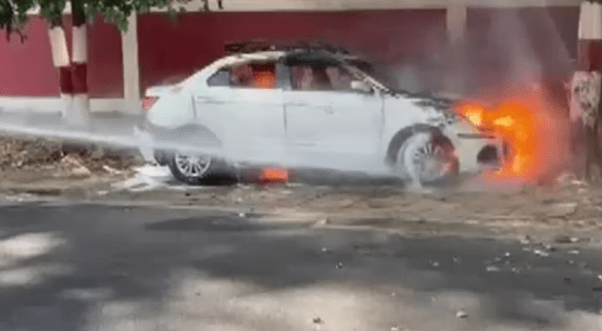 चलती कार में अचानक लगी आग