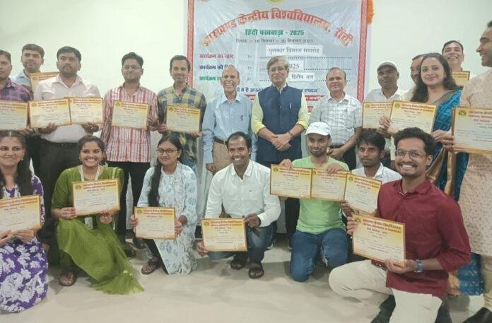 Ranchi : राजभाषा प्रकोष्ठ, झारखंड केंद्रीय विश्वविद्यालय (CUJ) द्वारा आयोजित हिंदी पखवाड़ा-2025 के समापन अवसर पर आज पुरस्कार वितरण समारोह का आयोजन किया गया। इस समारोह में हिंदी भाषा के प्रचार-प्रसार और संवर्धन के लिए उत्कृष्ट कार्य करने वाले कर्मचारियों को तथा हिंदी पखवाड़ा में आयोजित विभिन्न प्रतियोगिताओं के विजेताओं को सम्मानित एवं पुरस्कृत किया गया।