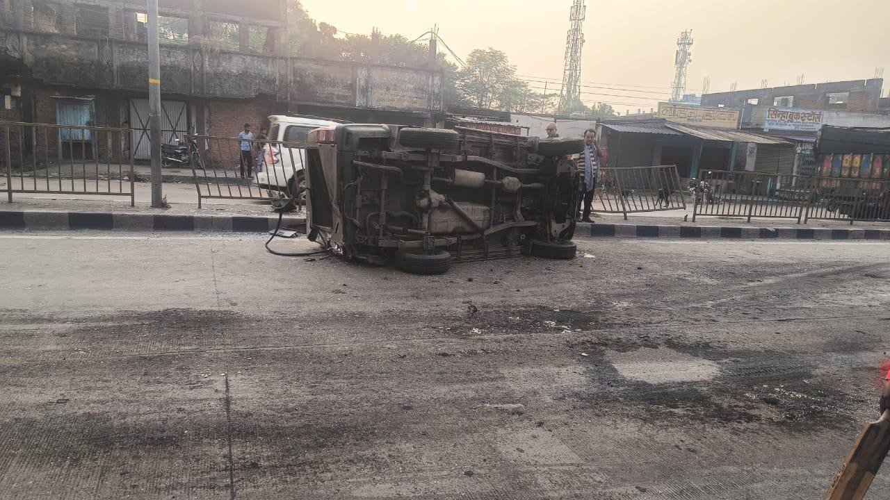 Bokaro: जिले के चास थाना क्षेत्र में भीषण सड़क दुर्घटना में पुलिस पेट्रोलिंग गाड़ी पलट गई। घटना गुरुद्वारा रोड के पास की बताई जा रही है, जहां तेज रफ्तार हाइवा ट्रक ने पुलिस पेट्रोलिंग गाड़ी को पीछे से जोरदार टक्कर मार दी। टक्कर इतनी तेज थी कि पुलिस की गाड़ी सड़क किनारे पलट गई और पूरी तरह क्षतिग्रस्त हो गई। हालांकि गाड़ी में सवार तीनों पुलिसकर्मी बाल-बाल बच गए, लेकिन उन्हें हल्की चोटें आई हैं। घायलों का इलाज स्थानीय अस्पताल में कराया जा रहा है।