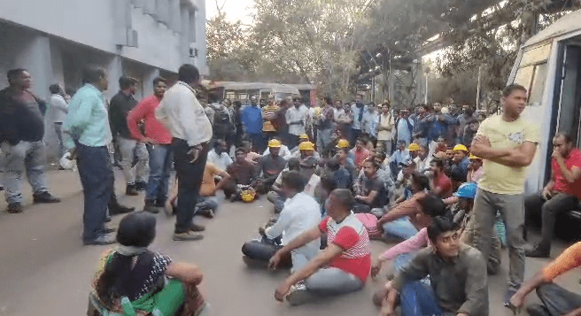 मजदूरों ने प्रबंधन के खिलाफ जमकर की नारेबाजी