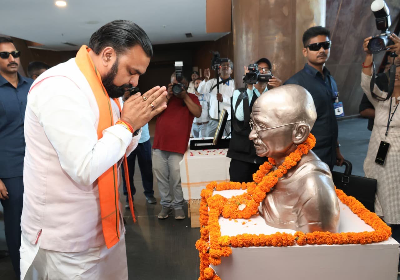 CM Samrat Choudhary ने बापू टावर पहुँचकर वहां स्थापित राष्ट्रपिता महात्मा गांधी की मूर्ति पर पुष्प अर्पित कर अपनी श्रद्धांजलि दी