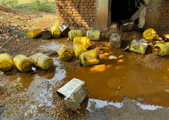 गिरिडीह में मतदान से पहले बड़ी मात्रा में महुआ शराब जब्त, धंधेबाज फरार