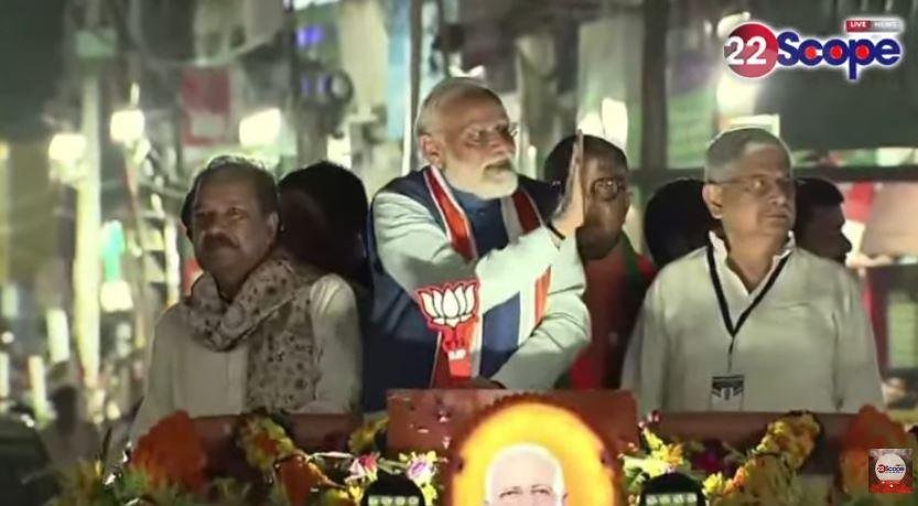 पीएम मोदी जब खुले वाहन में सवार होकर रोड शो कर रहे थे, तो समर्थकों ने “मोदी-मोदी” के नारे लगाए। प्रधानमंत्री ने रास्तेभर हाथ हिलाकर जनता का अभिवादन किया और फूलों की वर्षा से उनका स्वागत किया गया। इस दौरान महिलाए छत की बालकनी से आरती उतारती नजर आईं।