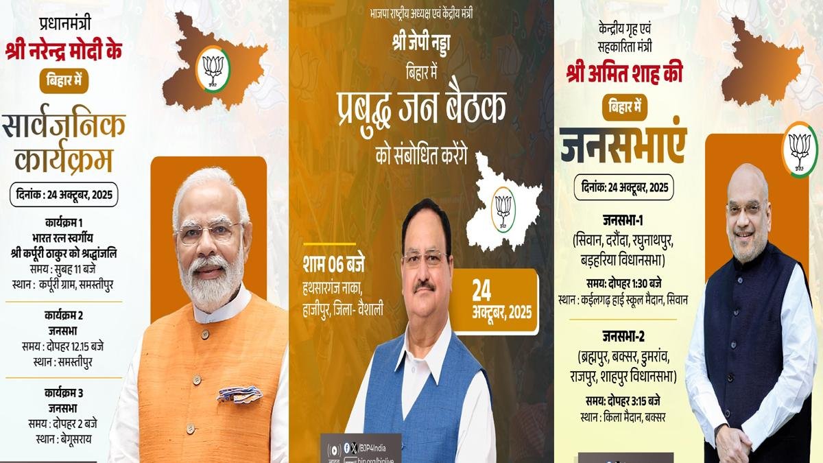 बिहार चुनाव : मोदी समस्तीपुर-बेगूसराय, शाह सिवान-बक्सर और नड्डा वैशाली में करेंगे प्रबुद्ध जन बैठक