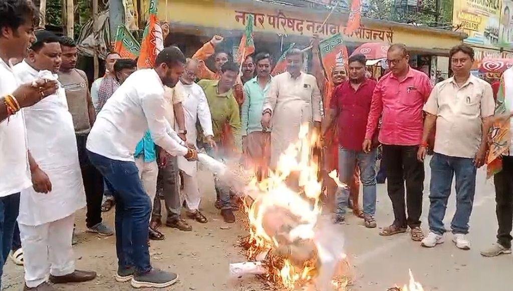 नवादा: दरभंगा में वोटर अधिकार यात्रा के दौरान प्रधानमंत्री नरेंद्र मोदी और उनकी मां को लेकर अमर्यादित भाषा के प्रयोग पर भाजपा कांग्रेस पर लगातार हमलावर है। कांग्रेस के विरोध में नवादा में भाजपा युवा मोर्चा के कार्यकर्ताओं ने लोकसभा में नेता प्रतिपक्ष राहुल गांधी और विधानसभा में नेता प्रतिपक्ष तेजस्वी यादव का पुतला फूंका। इस दौरान भाजपा जिलाध्यक्ष अनिल मेहता ने कहा कि एक गरीब मां का बेटा का प्रधानमंत्री बनना इन राजकुमारों को पच नहीं रहा है इसलिए मर्यादा की शालीनता की सभी सीमाएं तोड़ते हुए देश के प्रधानमंत्री और उनकी मां के लिए अमर्यादित शब्दों का प्रयोग किया गया।