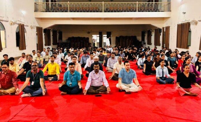 Bokaro : प्राध्यापक एवं कर्मचारी गण ने इस सामुहिक योगाभ्यास में लिया हिस्सा