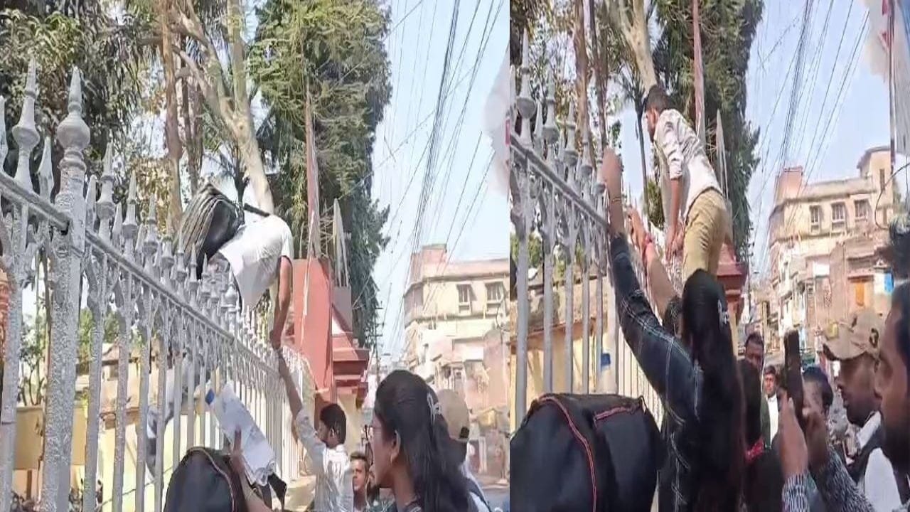 भागलपुर : भागलपुर के मारवाड़ी पाठशाला में चल रहे बीपीएससी परीक्षा में समय पर नहीं पहुंचने पर छात्र-छात्राओं को प्रवेश नहीं करने दिया तो छात्र-छात्राओं ने शुक्रवार को दीवाल और ग्रिल फांदकर एग्जाम सेंटर घुस गए। जिसकी तस्वीर सामने आई। आपको बता दे कि बिहार में तीसरे चरण की शिक्षक भर्ती परीक्षा शुक्रवार को दो शिफ्ट में आयोजित की जा रही है। पहली शिफ्ट का पेपर सुबह 9:30 बजे से दोपहर 12:00 बजे तक हुआ। दूसरी शिफ्ट का पेपर दोपहर 2:30 से शुरू होगा और पांच बजे तक चलेगा पहले शिफ्ट के दौरान कुछ अभ्यर्थी एग्जाम सेंटर की दीवार और ग्रिल बांधकर अंदर घुसते नजर आए।