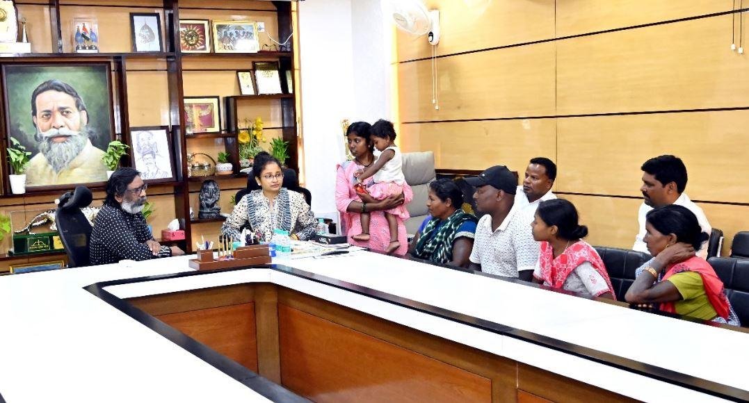 Ranchi : मुख्यमंत्री हेमंत सोरेन से आज कांके रोड रांची स्थित मुख्यमंत्री आवासीय कार्यालय में हजारीबाग जिला बल के हवलदार स्व० चौहान हेम्ब्रम के परिजनों ने मुलाकात की। मुख्यमंत्री ने हवलदार स्व० चौहान हेम्ब्रम की पत्नी श्रीमती जोमोती देवी, पुत्र महेश हेम्ब्रम तथा पुत्री स्वाति हेम्ब्रम सहित अन्य परिजनों के प्रति गहरी संवेदना प्रकट की। मुख्यमंत्री हेमन्त सोरेन ने हवलदार स्व० चौहान हेम्ब्रम के परिजनों को विश्वास दिलाया कि उन्हें हर हाल में न्याय मिलेगा।