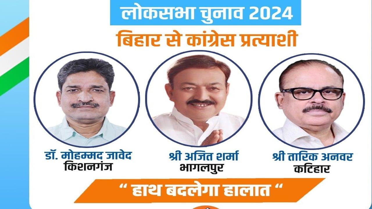 बता दें कि कांग्रेस ने बिहार के तीन उम्मीदवारों की घोषणा कर दी। किशनगंज से मो. जावेद, कटिहार से तारिक अनवर और भागलपुर से अजित शर्मा को उम्मीदवार बनाया गया है। कांग्रेस ने दूसरे चरण के तीन उम्मीदवार उतारे।