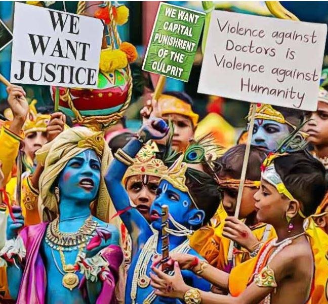 RG Kar की घटना ने जिस तरह लोगों को उद्वेलित किया है और जिस तरह आम जनमानस में इस घटना को लेकर आक्रोश है, उसे धार देने एवं संबल प्रदान करने श्रीकृष्ण के कुरूक्षेत्र में रहे स्वरूप की जरूरत है क्योंकि महाभारत में द्रौपदी के चीरहरण में भगवान उसी रूप में मददगार बने थे एवं इस मामले में नारी अस्मिता की सुरक्षा को जनमानस में रचे-बसे उसी श्रीकृष्ण वाले स्वरूप की घोर जरूरत है।