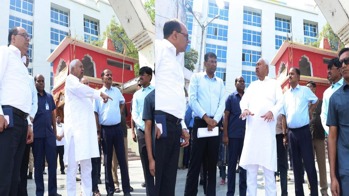 पटना : मुख्यमंत्री नीतीश कुमार ने पटना समाहरणालय भवन का निरीक्षण किया। इस दौरान मुख्यमंत्री ने पटना समाहरणालय के विकासात्मक कार्यों का जायजा भी लिया। मुख्यमंत्री ने समाहरणालय भवन के पांचवे तले पर मीटिंग हॉल, उप विकास आयुक्त जिला परिषद कार्यालय, अनुमंडल पदाधिकारी सदर कार्यालय का मुआयना किया। मुख्यमंत्री ने समाहरणालय के सभी तल का भी मुआयना किया।