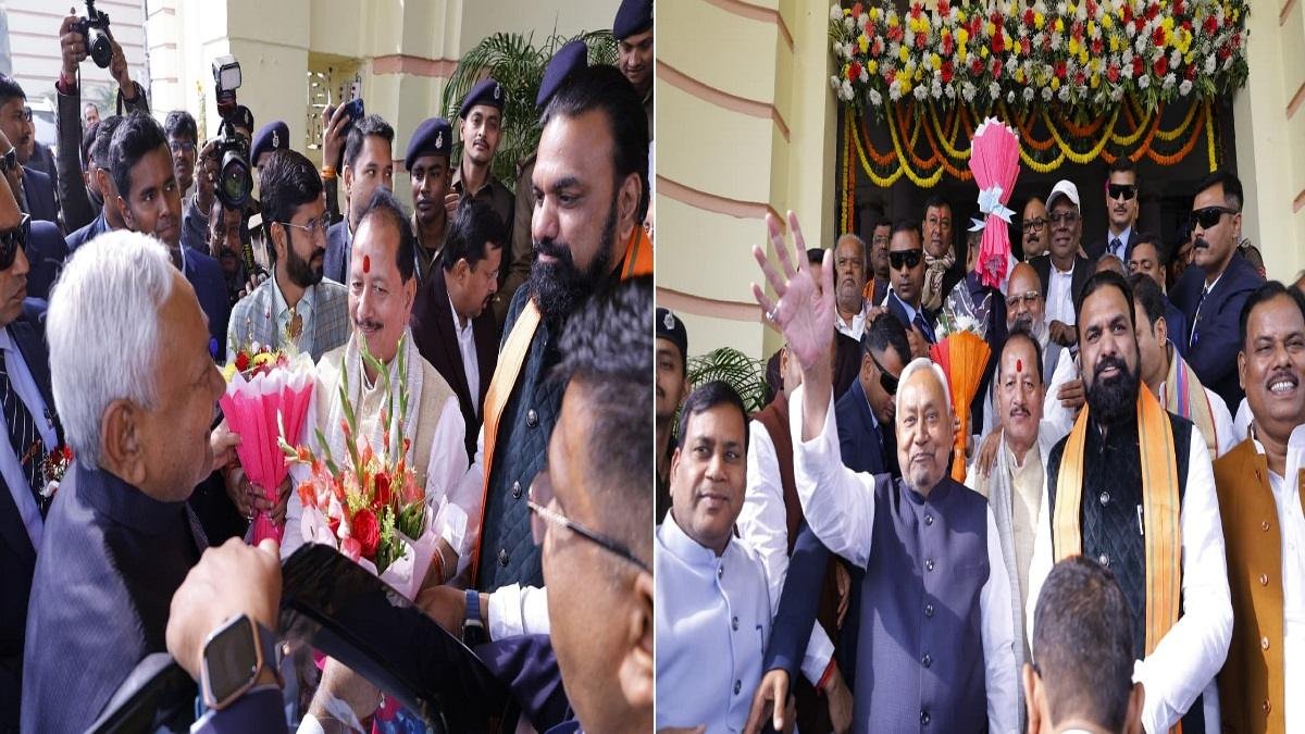 विधानसभा पहुँचे मुख्यमंत्री नीतीश कुमार, उपमुख्यमंत्री सम्राट चौधरी और विजय सिन्हा ने गुलदस्ता देकर किया स्वागत