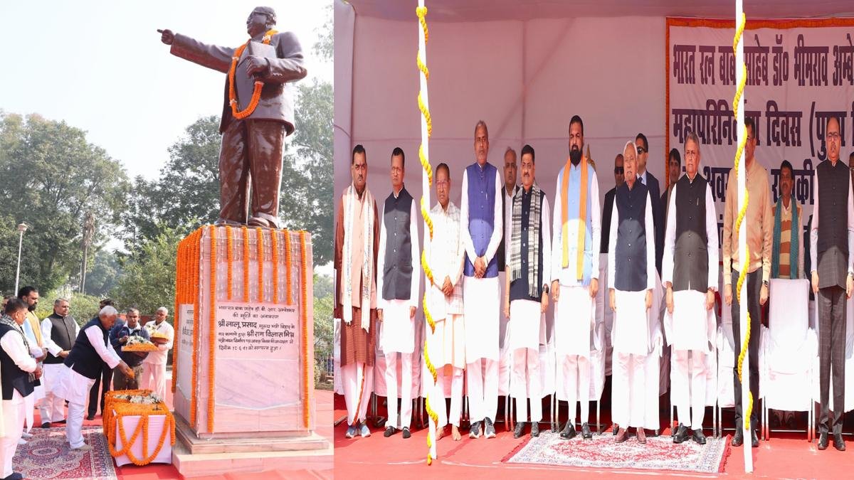 पटना : भारत रत्न बाबासाहेब डॉ. भीमराव अंबेडकर के महापरिनिर्वाण दिवस के अवसर पर पटना हाईकोर्ट के निकट बाबासाहेब डॉ. भीमराव अंबेडकर प्रतिमा प्रांगण में राजकीय समारोह आयोजित किया गया। मुख्यमंत्री नीतीश कुमार ने बाबासाहेब डॉ. भीमराव अंबेडकर की आदमकद प्रतिमा पर माल्यार्पण कर उन्हें भावभीनी श्रद्धांजलि अर्पित की।