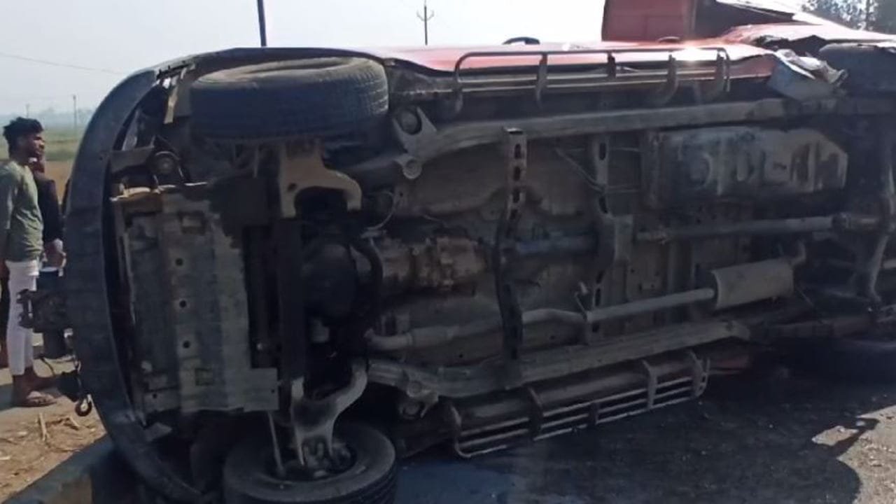 बच्चे की जान बची गाड़ी पलटी, ड्राइवर समेत कई कर्मी घायल