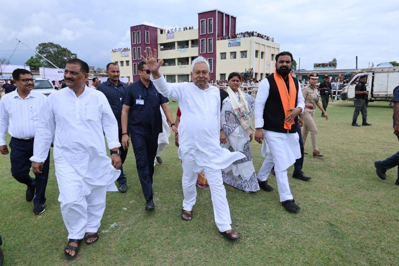 मधुबनी: CM नीतीश कुमार ने आज मधुबनी जिला के लौकही में जिला के लिए प्रगति यात्रा के दौरान की गई घोषणाओं से संबंधित विकास योजनाओं का शिलापट्ट अनावरण कर शिलान्यास किया। CM ने लौकही के सूर्य प्रसाद प्लस टू उच्च विद्यालय के परिसर में बने हेलीपैड पर उतरने के बाद निश्चय रथ पर सवार होकर कार्यक्रम स्थल तक रोड शो किया। इस दौरान वहां उपस्थित जनसमूह ने CM का गर्मजोशी से स्वागत किया। CM ने भी सभी लोगों का अभिवादन स्वीकार किया।