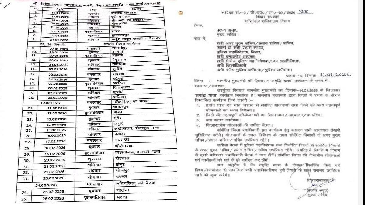 मुख्यमंत्री की समृद्धि यात्रा का पूरा शिड्यूल जारी, 16 जनवरी को पश्चिम चंपारण से करेंगे शुरूआत