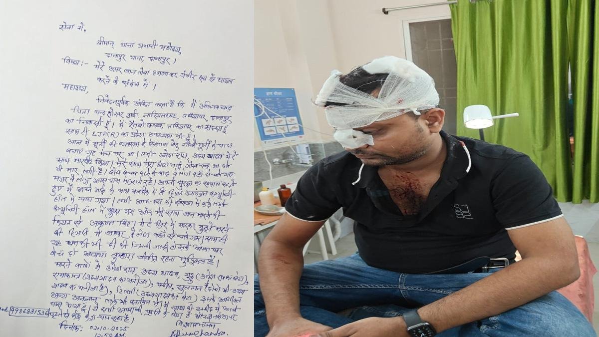 दानापुर : लोक जनशक्ति पार्टी (रामविलास) के कला एवं खेल प्रकोष्ठ के प्रदेश उपाध्यक्ष अभिनव चंद्रा के साथ दानापुर तकिया पर पंडाल में कल यानी बुधवार की रात अपराधियों द्वारा जानलेवा हमला किया गया। साथ ही उनके साथ मारपीट कर बुरी तरह से घायल कर दिया गया है। जिसकी प्राथमिकी देर रात दानापुर थाना में दर्ज किया गया है। इसके बावजूद इस मामले में अबतक किसी अपराधी की गिरफ्तारी नहीं हो पाई है जो चिंता का विषय है। दानापुर पुलिस का कहना है कि जल्द से जल्द अपराधी को पकड़कर गिरफ्तार किया जाएगा।
