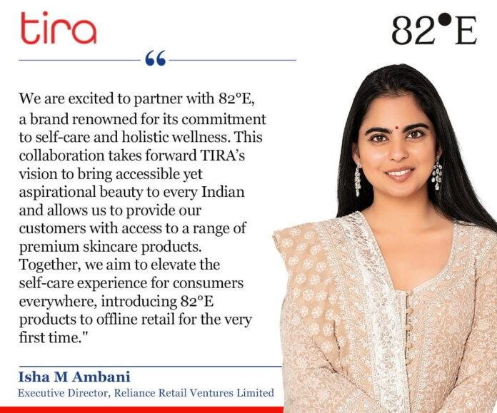 रिलायंस रिटेल वेंचर्स लिमिटेड की कार्यकारी निदेशक, ईशा एम अंबानी ने कहा, “हम 82°E के साथ साझेदारी करके उत्साहित हैं, जो सेल्फ केयर का एक प्रसिद्ध ब्रांड है। यह साझेदारी टीरा के दृष्टिकोण को आगे बढ़ाती है और हमें अपने ग्राहकों को प्रीमियम स्कीन केयर प्रोडक्ट्स पहुंचाने में मदद करती है। साथ मिलकर, हमारा लक्ष्य पहली बार ऑफलाइन रिटेल में 82°E उत्पादों को पेश करना है।