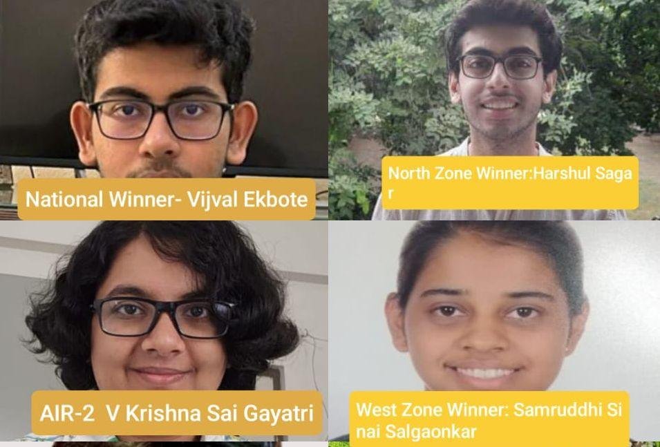बिरला इंस्टीट्यूट ऑफ टेक्नोलॉजी एंड साइंस-पिलानी के हैदराबाद कैंपस की छात्रा वी कृष्ण साई गायत्री ने देशभर में दूसरा स्थान हालिस किया है। इससे पहले आयोजित प्रतियोगिता के “एन” राउंड में वह साउथ जोन की विजेता भी रह चुकी हैं। वहीं, ग्वालियर स्थित अटल बिहारी वाजपेयी-इंडियन इंस्टीट्यूट ऑफ इंफॉर्मेशन टेक्नोलॉजी एंड मैनेजमेंट के आयुष साह ने तीसरा पायदान हासिल किया है।