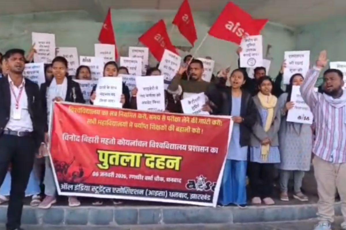 Dhanbad News: विश्वविधालय में लम्बे समय से शैक्षणिक व्यवस्था में कमी पर नाराजगी जताते हुए छात्र संगठन आइसा के द्वारा रणधीर वर्मा चौक पर बीबीएमकेयू के कुलपति डॉ. राम कुमार का पुतला दहन कर जोरदार विरोध प्रदर्शन किया. इस दौरान बड़ी संख्या में छात्र मौजूद रहे और कुलपति के खिलाफ जमकर नारेबाजी की. प्रदर्शन कर रहे छात्रों का कहना है कि विश्वविद्यालय में लंबे समय से शैक्षणिक व्यवस्थाओं की कमी बनी हुई है, लेकिन प्रशासन इस ओर कोई ध्यान नहीं दे रहा है.