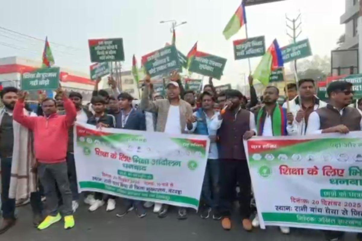 छात्र आजसू संघ का धनबाद में आज अनोखा प्रदर्शन देखने को मिला छात्रों की लंबित छात्रवृत्ति और शिक्षा से जुड़े ज्वलंत मुद्दों को लेकर संघ ने ‘शिक्षा के लिए भिक्षा थीम पर सरकार के खिलाफ आक्रोश जताया इस आंदोलन’ के तहत सैकड़ों छात्र-छात्राएं रानी बांध धैया से डीसी ऑफिस (मेमको मोड़) तक पदयात्रा करते हुए निकले.