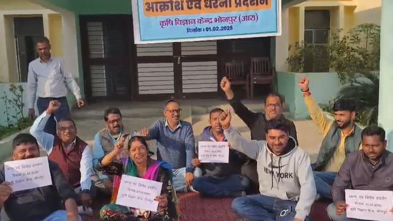 कृषि विज्ञान केंद्र आरा के कर्मचारियों ने कार्यालय कक्ष के समक्ष दिया धरना प्रदर्शन