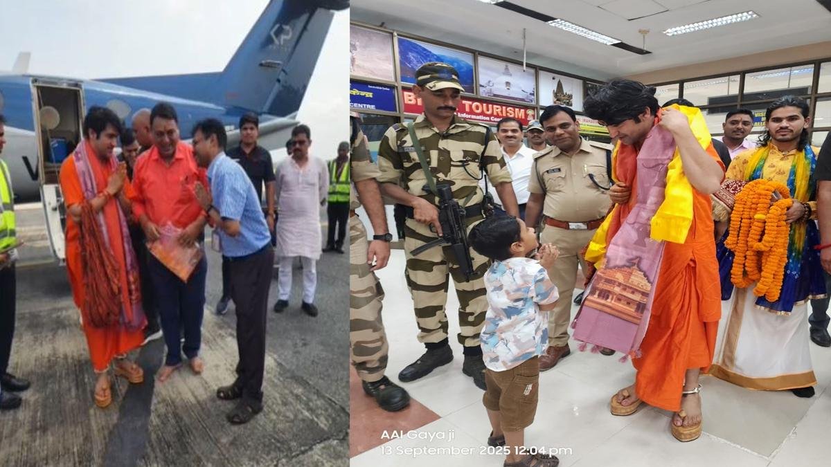 गयाजी : बागेश्वर धाम वाले सरकार आचार्य पंडित धीरेंद्र कृष्ण शास्त्री एक बार फिर गयाजी पहुंचे। विशेष विमान से गया एयरपोर्ट पर पहुंचे जहां कड़ी सुरक्षा के बीच में उन्हें बोधगया स्थित एक होटल में ले जाया गया, जहां वे सीमित अपने भक्तों के बीच त्रिपिंडी श्राद्ध और भागवत कथा भक्तों के बीच ही करेंगे। बता दें कि वे यहां तीन दिनों तक प्रवास करेंगे। वहीं उनका गया एयरपोर्ट पर भव्य रूप से स्वागत किया गया।