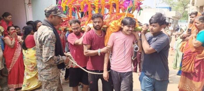 GIRIDIH जिले के जमुआ थाना क्षेत्र मे एक दिल झकझोर देने वाली घटना सामने आई है, एक युवक जो हथकड़ी लगे हाथों से अपनी मां की अर्थी को कंधा दे रहा है. इस हृदयविदारक घटना को देखकर पूरा समाज रो पड़ा.