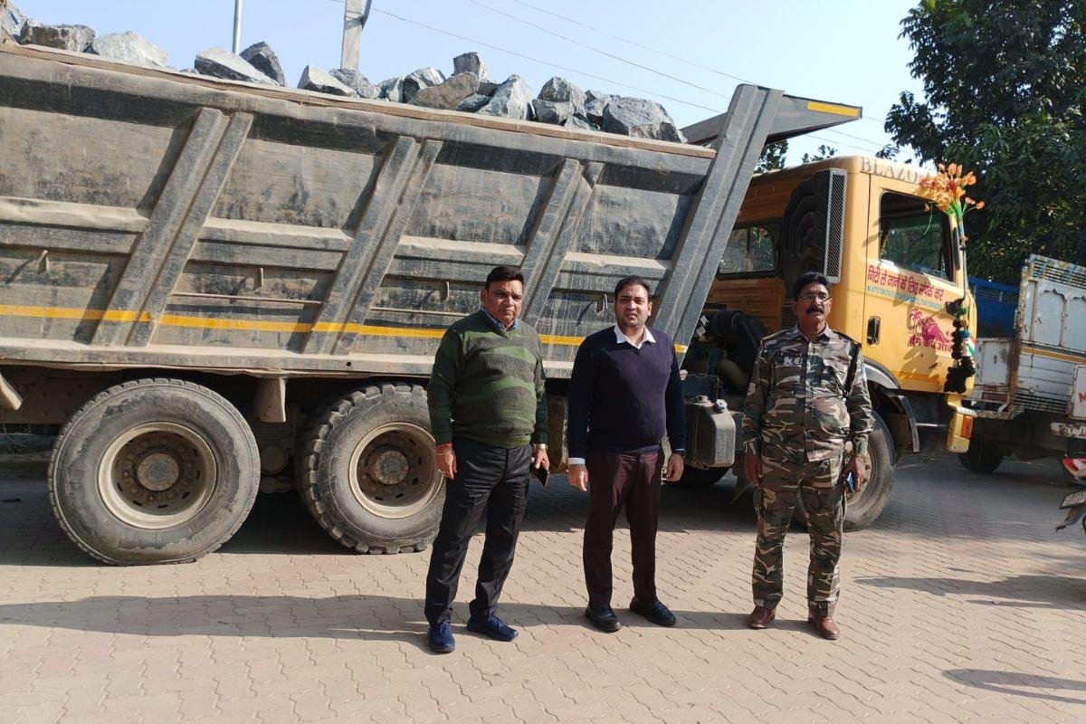 अभियान के दौरान घोड़थम्भा के समीप एक हाईवा वाहन संदिग्ध परिस्थिति में पाया गया. जांच करने पर पुष्टि हुई कि वाहन में अवैध रूप से पत्थर लदा हुआ था. वाहन को परिवहन बिना वैध चालान तथा निर्धारित सुरक्षा मानकों का पालन किए बिना चला रहे थे. साथ ही वाहन ओवरलोड पाया गया. मौके पर ही हाईवा को स्थानीय पुलिस के द्वारा जब्त कर लिया गया साथ ही संबंधित प्रावधानों के तहत कार्रवाई प्रारंभ कर दी गई है.