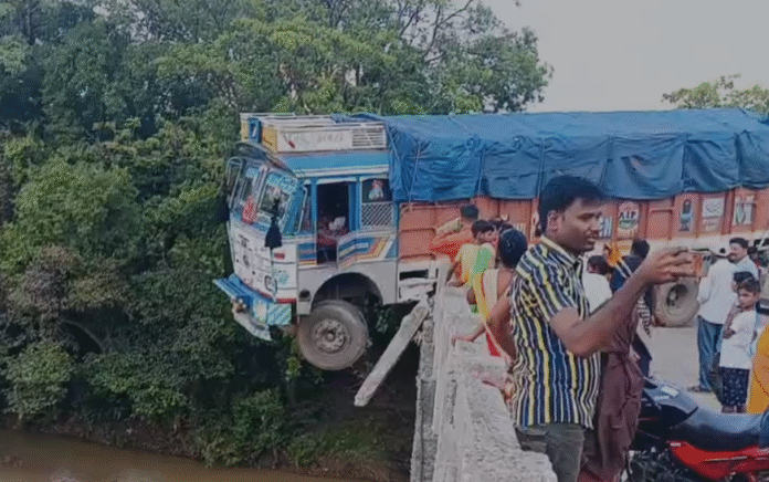 Giridih : गिरिडीह जिले के भरकट्टा ओपी क्षेत्र के खुरजीयो-ईरगा नदी पुल पर बड़ा हादसा टल गया। शराब के नशे में धुत ट्रक चालक ने नियंत्रण खो दिया। ट्रक पुल की रेलिंग से टकराया और उसका अगला हिस्सा नदी की ओर लटक गया। घटना के बाद वहां भारी संख्या में लोगों की भीड़ जमा हो गई।
