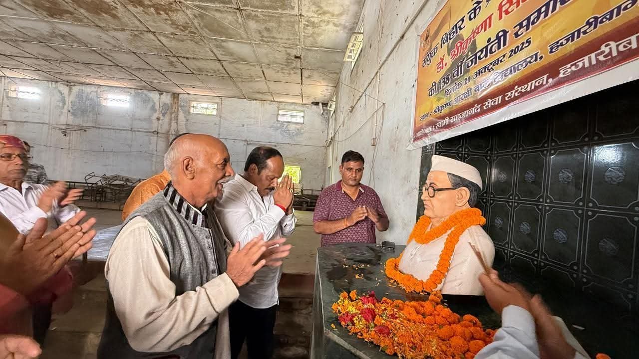 हजारीबाग. स्वामी सहजानन्द सेवा संस्थान (ब्रह्मऋषि समाज) हज़ारीबाग द्वारा स्थानीय पुलिस लाइन स्थित राजकीयकृत श्रीकृष्ण आरक्षी बाल उच्च विद्यालय के श्रीकृष्ण सभागार परिसर में मंगलवार को आयोजित बिहार केशरी डॉ. श्रीकृष्ण सिंह की 138 वीं जयन्ती समारोह धूमधाम से मनाया गया। मौके पर विषेश रूप से हजारीबाग सदर विधायक प्रदीप प्रसाद, प्रो. रामप्रिय बाबू, सांसद मनीष जायसवाल के लोकसभा क्षेत्र के सांसद मीडिया प्रतिनिधि रंजनचौधरी सहित ब्रह्मर्षि समाज के दर्जनों गणमान्य लोगों ने उपस्थित होकर श्रीबाबू की प्रतिमा पर माल्यार्पण कर उन्हें नमन किया।