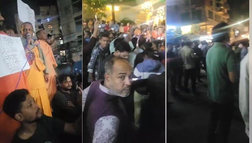 इस्कॉन संत चिन्मय कृष्ण दास प्रभु की अविलंब रिहाई की मांग करते हुए नाराज अल्पसंख्यक हिंदुओं ने सनातनियों का बैनर लगाकर विक्षोभ प्रदर्शन शुरू कर दिया। जुटी नाराज लोगों की भीड़ ने सड़क पर ही बैठक पोस्टर लिखे, नारे वाले पोस्टर लिखकर सोशल मीडिया पर पूरा मामला प्रसारित किया।
