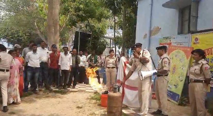 इस दौरान प्रभारी अग्निशमन पदाधिकारी अमरीक प्रसाद ने बताया कि आग लगने पर अक्सर लोग पानी डाल कर आग बुझाने की कोशिश करते हैं जिससे आग और फ़ैल जाती है। यदि घरेलु गैस सिलिंडर में आग लगे तो उस पर भीगा कपडा लपेट देना चाहिए जिससे आग बुझ जाती है। घरेलू सिलिंडर में अगर आग लगे तो उसके ऊपर आटा या मिट्टी भी डालने से आग बुझती है।