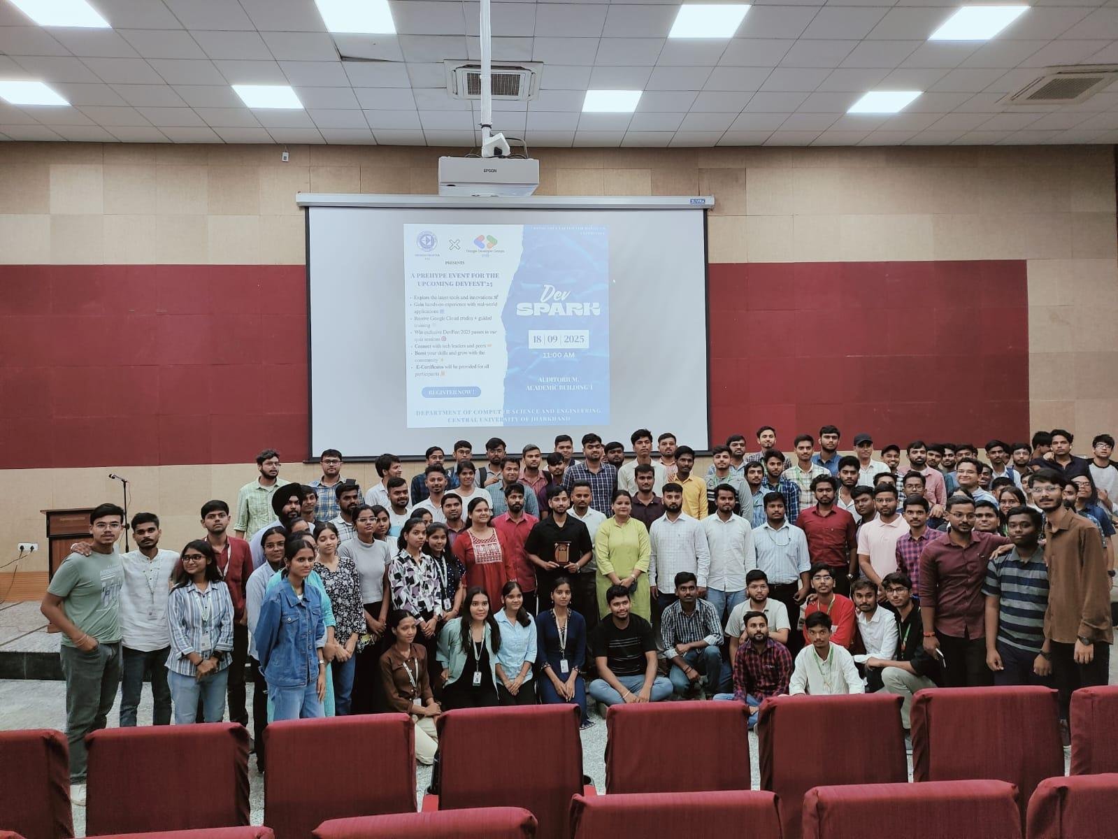 रांची. केंद्रीय विश्वविद्यालय झारखंड (सीयूजे) के अकादमिक भवन-I के सभागार में आज तकनीकी उत्साह और नवाचार का अनूठा संगम देखने को मिला। कंप्यूटर विज्ञान एवं अभियांत्रिकी विभाग की पहल पर, कंप्युटर सोसायटी ऑफ इंडिया (सीएसआई) स्टूडेंट चैप्टर सीयूजे और गूगल डेवलपर ग्रुप्स (जीडीजी) रांची के सहयोग से आयोजित एकदिवसीय कार्यक्रम ‘डेव-स्पार्क’ ने छात्रों को नई तकनीकों से अवगत कराने और उद्योग की वास्तविकताओं से जोड़ने का सशक्त मंच प्रदान किया।