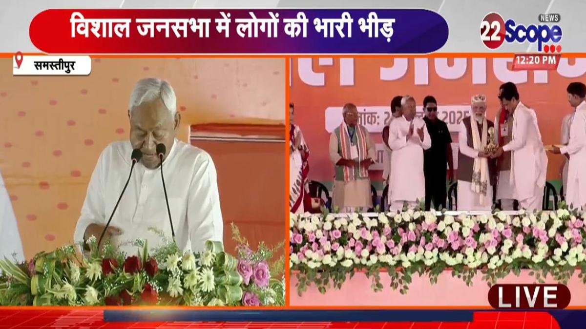 भारत रत्न कर्पूरी ठाकुर को श्रद्धांजलि देने के बाद पीएम मोदी सीधे जनसभा को संबोधित करने मंच पर पहुंचे। यहां पर सीएम नीतीश कुमार ने उनका स्वागत किया। सीएम नीतीश कुमार ने पीएम मोदी को फिर से बिहार आने के लिए धन्यवाद दिया। इसके बाद बिहार सरकार की उपलब्धियां गिनाई। सीएम नीतीश कुमार ने कहा कि हमलोगों ने बिहार के विकास के लिए बहुत काम किया। केंद्र सरकार ने बजट में विशेष आर्थिक सहायता के लिए सड़क, पुल, बाढ़ नियंत्रण के लिए बड़ी राशि दी। मखाना बोर्ड का गठन किया।