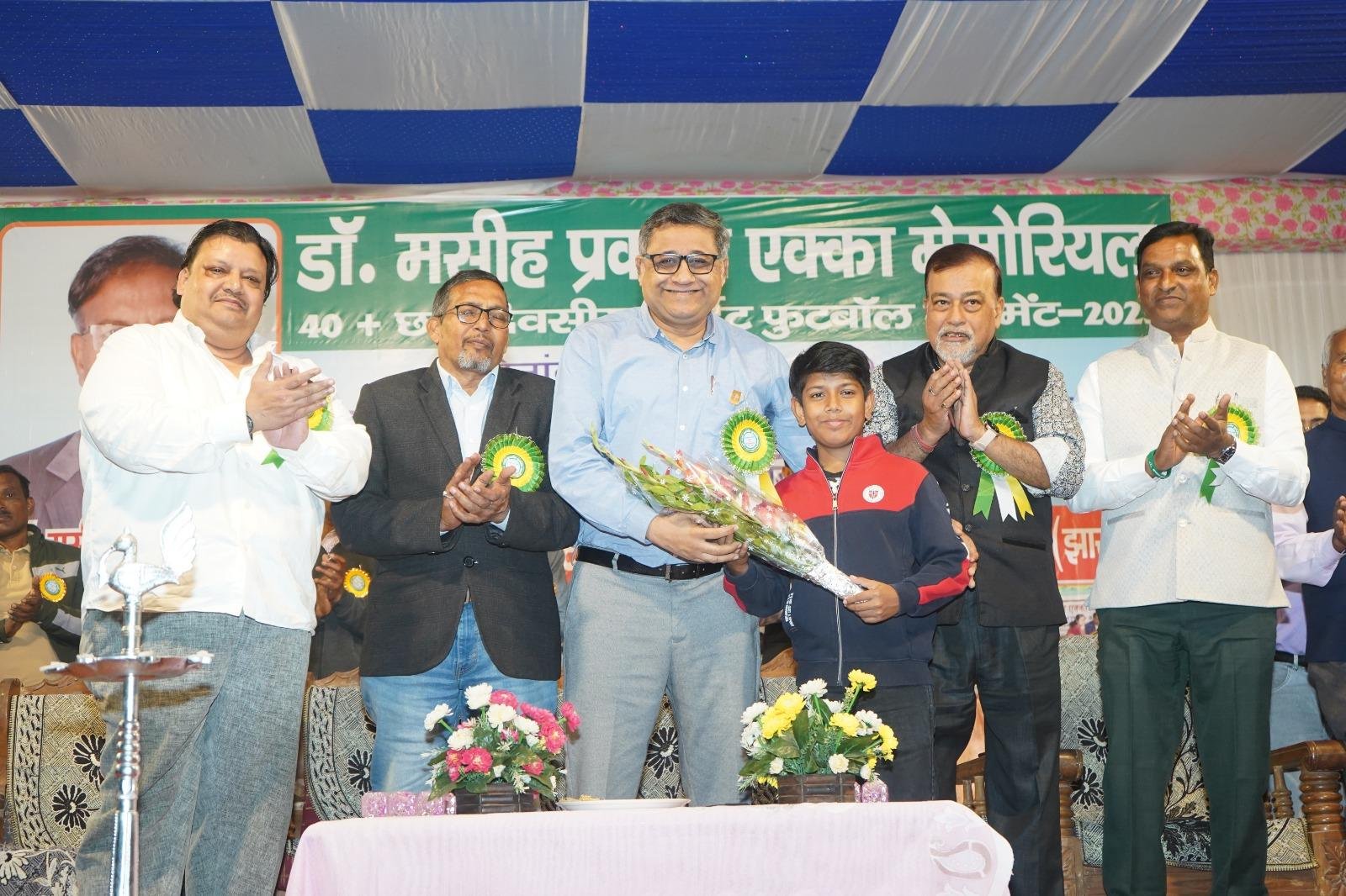 रांची. डॉ. मसीहा प्रकाश एक्का स्मृति 40+ सिक्स डे नाइट फुटबॉल टूर्नामेंट 2025 का भव्य उद्घाटन 3 नवम्बर 2025 को सायं 6:00 बजे डब्ल्यू. जॉन मल्टीपरपज़ बोर्डिंग स्कूल ग्राउंड, पिरसका नागरी, रांची में हुआ। यह आयोजन खेल भावना, एकता और स्वस्थ प्रतिस्पर्धा का उत्सव है, जो रात्रि के उजाले में उत्साह से भरपूर रहा। इस अवसर पर मुख्य अतिथि आरटीएन. मुकेश तनेजा (डीजीएन) रोटरी इंटरनेशनल डिस्ट्रिक्ट 3250 तथा विशिष्ट अतिथि चंचल भट्टाचार्य उपस्थित रहे।
