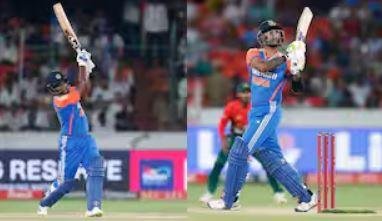 India vs Bangladesh: भारत और बांग्लादेश के बीच आज तीसरा और आखिरी टी20 मैच हैदराबाद के राजीव गांधी इंटरनेशनल स्टेडियम में खेला जा रहा है। भारत ने टॉस जीतकर पहले बल्लेबाजी करने का फैसाल किया, जो सही साबित हुआ। भारत के बल्लेबाजों ने बांग्लादेशी गेंदबाजों की जमकर पिटाई की। एक समय ऐसा लग रहा था कि भारत नया रिकॉर्ड कायम करेगा। हालांकि संजू सैमसन और कप्तान सूर्यकुमार यादव के आउट होने के बाद जो लक्ष्य भारत बनाना चाहता था, वो नहीं बना पाया।