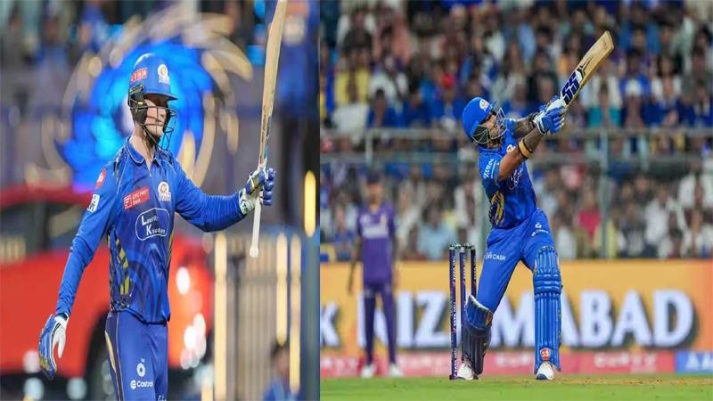 वहीं छोटे से लक्ष्य को पूरा करने के लिए मुंबई इंडियंस की तरफ से पारी की शुरुआत टीम के पूर्व कप्तान रोहित शर्मा (13) और दक्षिण अफ्रीका के विकेटकीपर बल्लेबाज रयान रिकेलटन (नाबाद 62 रन, 41 गेंद, चार चौके, पांच छक्के) ने पहले विकेट लिए 46 रन जोड़े। इसके बाद विल जैक्स (16) आए और वो भी ज्यादा कुछ नहीं कर पाए। लेकिन टीम के 360 डिग्री बल्लेबाज सूर्यकुमार यादव (नाबाद 27 रन, नौ गेंद, तीन चौके, दो छक्के) ने ताबड़तोड़ बल्लेबाजी करते हुए टीम को 12.5 ओवर में दो विकेट के नुकसान पर 121 रन बनाकर इंडियंस को पहला जीत चखने का स्वाद दिया। इसके साथ ही टीम प्वाइंट टेबल में आखिरी पायदान से हटकर छठे स्थान पर पहुंच गई है।