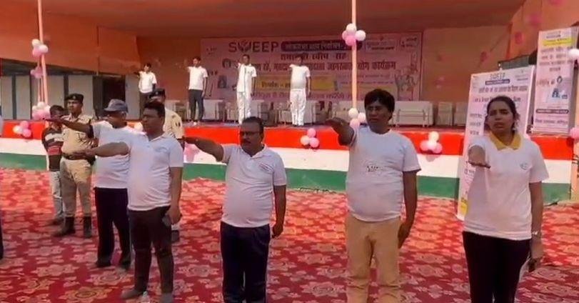 इस दौरान जिलाधिकारी ने लोगों के साथ मिलकर योग किया साथ ही उन्हें मतदान की शपथ भी दिलाई। इस अवसर पर जिलाधिकारी सह जिला निर्वाचन पदाघिकारी विजय प्रकाश मीणा ने लोगों को मर्यादा में रहते हुए बिना किसी भेदभाव के निर्भीक हो कर मतदान का शपथ दिलाया और लोगो से अपील की कि मतदान के दिन पहले मतदान करें फिर जलपान करें