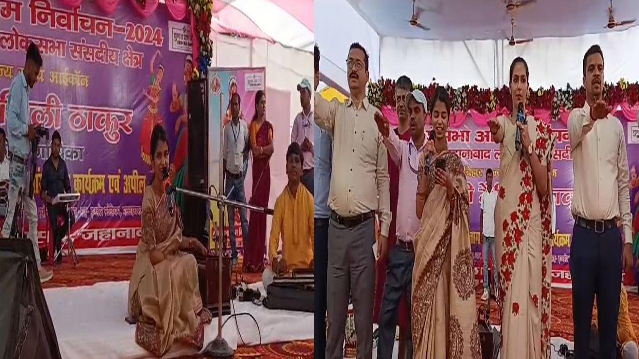 जहानाबाद : जहानाबाद जैसे-जैसे लोकसभा चुनाव की तारीख नजदीक आ रही है, प्रशासन अपनी तैयारी में जुट गई है। जिला प्रशासन द्वारा मतदाताओं को जागरूक लगातार जागरूकता कार्यक्रम चलाया जा रहा है। इसी कड़ी में शहर के इंडोर स्टेडियम में लोक गायिका मैथिली ठाकुर का कार्यक्रम आयोजित किया गया। जिसमें मैथिली ठाकुर ने गीत संगीत के माध्यम से लोगों को अपने मताधिकार के प्रयोग के लिए जागरूक किया। जहानाबाद में एक जून को होने वाले चुनाव में मतदान करने के लिए अपील किया। इस कार्यक्रम में बड़ी संख्या में लोगों ने भाग लिया।