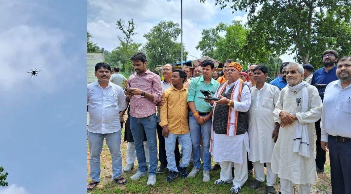 Gaya में मंत्री प्रेम कुमार ने पहाड़ों पर ड्रोन से गिराया सीड बॉल