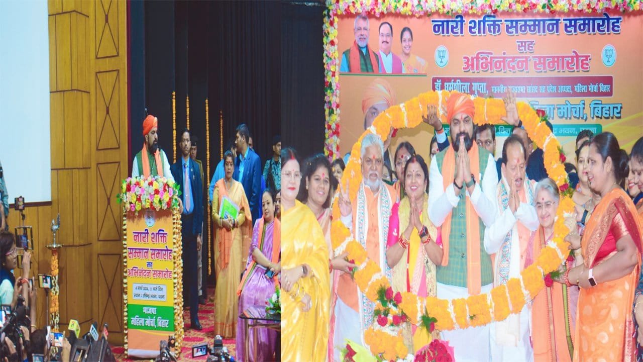 पटना : भाजपा महिला मोर्चा बिहार प्रदेश द्वारा आज पटना के रविंद्र भवन में नारी शक्ति सम्मान समारोह सह अभिनंदन समारोह कार्यक्रम का आयोजन किया गया। इस मौके पर ‘नारी शक्ति अभिनंदन’ के तहत बिहार के प्रतिभावान महिला को सम्मान देने व उनका मान बढ़ाने के लिए महिला मोर्चा बिहार प्रदेश द्वारा बिहार की 50 से ज्यादा प्रतिभावान महिला खिलाड़ियों को सम्मानित और अभिनंदन किया गया। इस कार्यक्रम को संबोधित करते हुए भाजपा के प्रदेश अध्यक्ष और उप मुख्यमंत्री सम्राट चौधरी ने कहा कि जब एक लड़का पढ़ता है तो एक व्यक्ति पढ़ता है जबकि एक बहन पढ़ती है तो एक परिवार पढ़ता है। उन्होंने कहा कि आज जननी के रूप में भी माताएं हैं तो विद्या की देवी भी सरस्वती मां ही हैं।