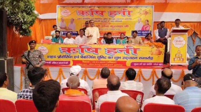 मुजफ्फरपुर: प्रधानमंत्री सूक्ष्म खाद्य प्रसंस्करण उद्यम योजना के तहत सरकार छोटे इकाइयों को वित्तीय सहायता प्रदान करती है। सरकार से वित्तीय सहायता प्रदत्त मधु पैकेजिंग यूनिट का पूर्व केंद्रीय मंत्री उपेन्द्र कुशवाहा ने उध्गाटन किया। पूर्व केंद्रीय मंत्री उपेन्द्र कुशवाहा शनिवार को मुजफ्फरपुर के मुसहरी प्रखंड अंतर्गत नवादा पंचायत में मधुमक्खी पालक किसान सगीना कुमारी के ऋषि हनी प्रोसेसिंग एंड पैकेजिंग यूनिट का शुभारंभ किया। NDA NDA NDA