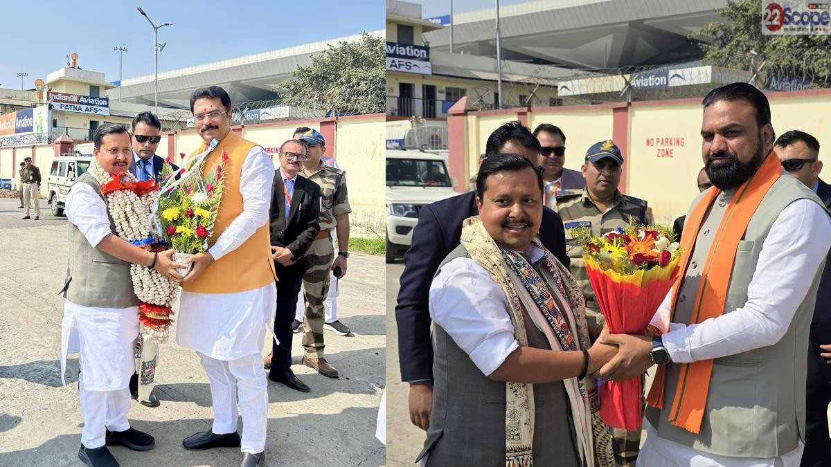 पटना पहुंचे नितिन नवीन, एयरपोर्ट पर संजय व सम्राट ने की भव्य स्वागत