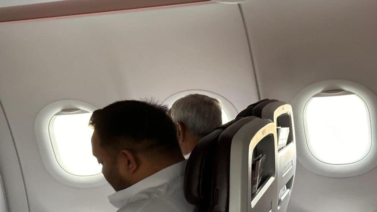 अपने-अपने गठबंधन की बैठक में भाग लेने के लिए बिहार के सीएम नीतीश कुमार और विपक्ष के नेता तेजस्वी यादव दिल्ली के लिए निकल चुके हैं। सबसे खास बात यह है कि ये दोनों नेता एक ही फ्लाइट में अलग-बगल बैठे हुए दिखाई दिए। ऐसा लग रहा है कि दोनों एक ही गठबंधन में हैं। पहले तो तेजस्वी यादव पीछे की सीट पर बैठे हुए थे बाद में चाचा नीतीश कुमार के बगल में आकर बैठ गए।