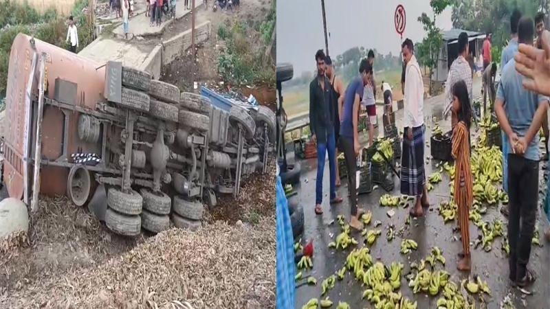 घटना के संबंध में बताया जाता है कि केमिकल भरा टैंकर रक्सौल के तरफ से आ रही थी और केला लदा पिकअप विपरीत दिशा से जा रही थी। तभी चालक के नियंत्रण खो जाने के कारण दोनों में जोरदार टक्कर हो गई। जिसमें तेल टैंकर गड्ढे में जा गिरी और पिकअप भी सड़क पर पलट गई। इस दरम्यान ट्रक चालक कूद ग,या जिस कारण उसे चोट नहीं लगी। पिकअप चालक को हलकी चोट लगी, जिन्हें स्थानीय सहयोग से इलाज कराया गया। वहीं मौके पर पुलिस पहुंचकर मामले के जांच में जुट गई है। तेल टैंकर और केला लदी पिकअप आपस में टकरा गई। जिससे तेल टैंकर सड़क के किनारे गड्ढे में पलट गई। चालक जान बचाकर कूद गया। जिसके बाद टैकर से तेल रिसाव करने लगा। घटना में कोई हताहत नहीं हुआ है।