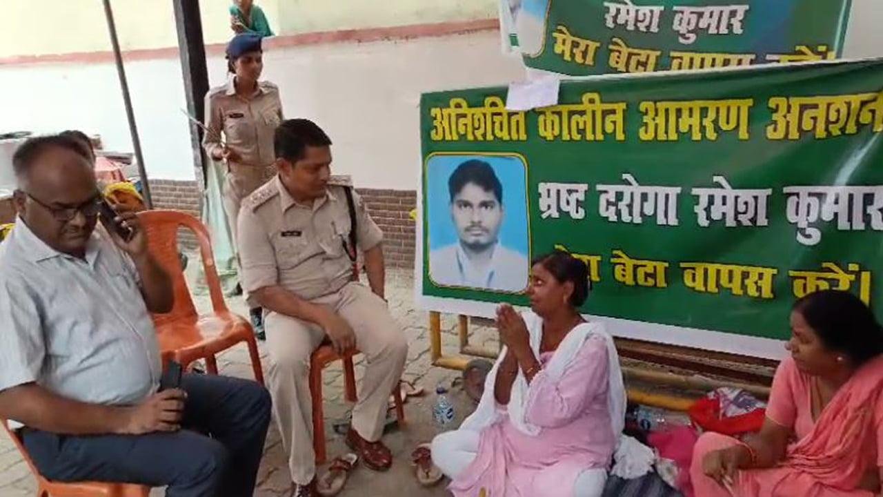 बेटे की सकुशल बरामदगी को लेकर आमरण अनशन पर बैठी मां, महिला को समझाने में जुटे अधिकारी