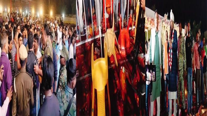 बैरीकेट को पार कर मंच के पास पहुंचे लोग